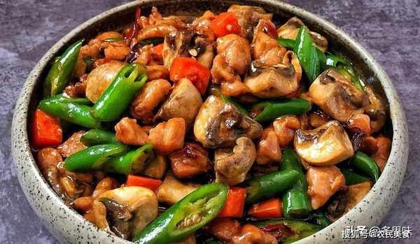 3、炒锅放油,放入姜丝、干辣椒丝、花椒爆香后放入鸡肉丁翻炒均匀,倒入胡萝卜和草菇继续翻炒一下,加入调味料(生抽1勺,蚝油1勺,盐1勺)炒匀,最后放入线椒翻炒一下,倒入水淀粉勾芡即可。真的是超级香辣嫩滑,非常好吃,强烈推荐给喜欢辣的朋友们
