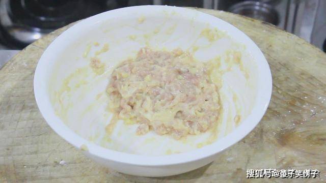 5分钟以后,再打入一个鸡蛋。抓匀以后,再加入干淀粉,用手反复抓匀上劲。