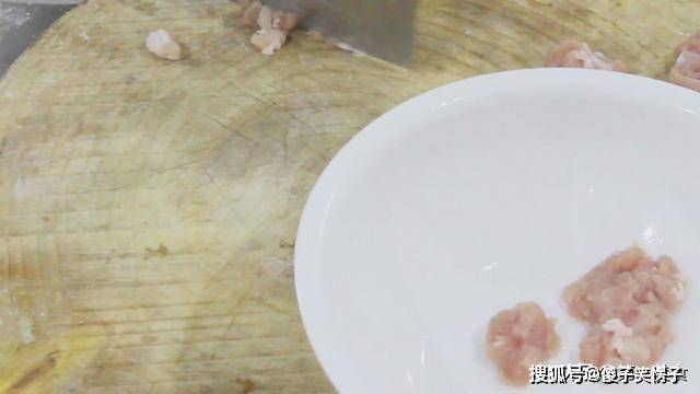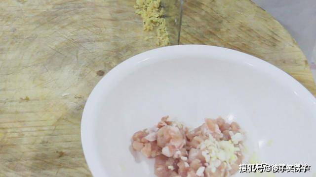 大葱白切成葱花,生姜切成末,和肉丁放在一起。