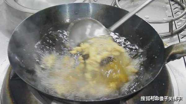 锅里烧油,烧至5成热(微微冒烟),倒入牙签肉。如果有粘连,用勺子轻轻打散。
