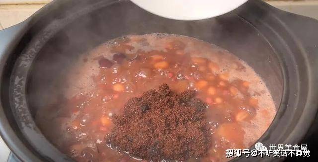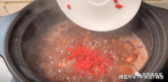 11、将它装在碗中,稍微放温热就可以喝。这道五红汤,堪称女人宝,口感香甜,采用五种不同的食材,可以补气血,美容养颜。