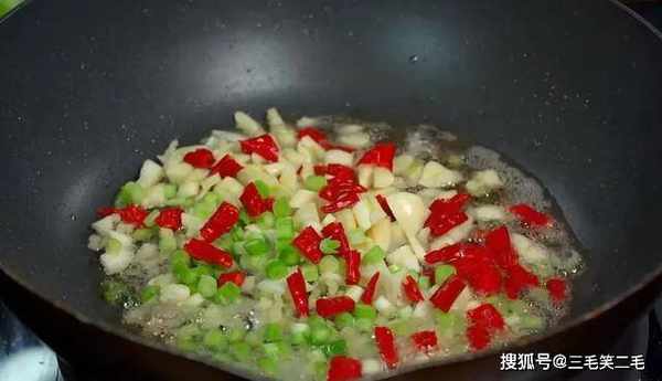 5、继续热锅放油、葱姜蒜、辣椒爆香。