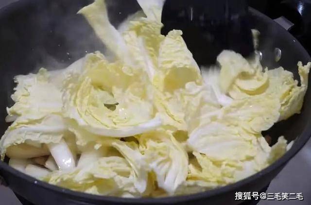 5、随后倒入白菜,爆炒半分钟。