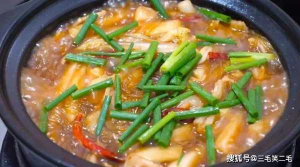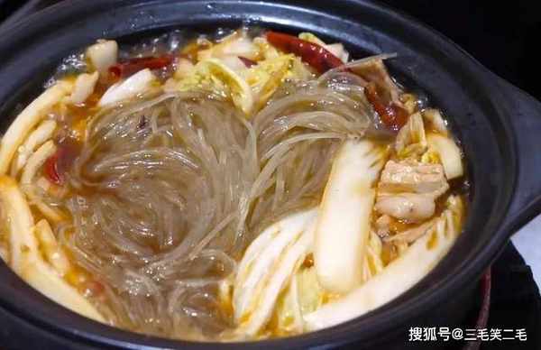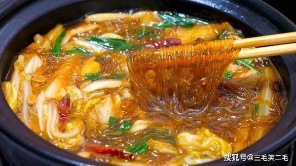 9、这道白菜炖粉条,香软入味,汁水充足,用来拌饭吃很好吃,热乎乎的一大锅,最适合冬季吃。
