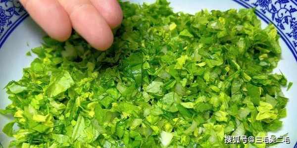 1、首先准备白菜叶,切碎备用,加两勺花生油搅拌,锁住水分。