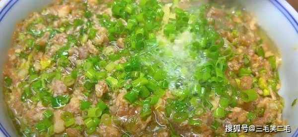 4、最后放入葱花,倒入热油激发香味,做出来的馅料,又香又嫩又多汁。