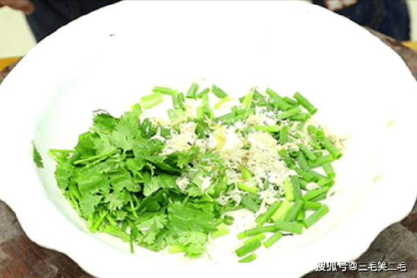 小香葱切段、香菜也切成段放入汤盆中,抓入一小把虾皮,稍微加点盐,虾皮本身有咸味,鸡粉、胡椒粉、香醋、芝麻香油备用。