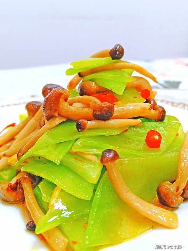 其做法也是多种多样,煎炒,清炒,火锅,汤类等都是可以的,今天分享的这道菜是搭配的莴笋,常言道"春令莴笋似黄金",春天吃它正当时,口感非常鲜嫩,和蟹味菇搭配,是一道妥妥的减脂菜,又是一样营养非常全面的菜,下面我们一起来看看具体的烹饪方法吧!