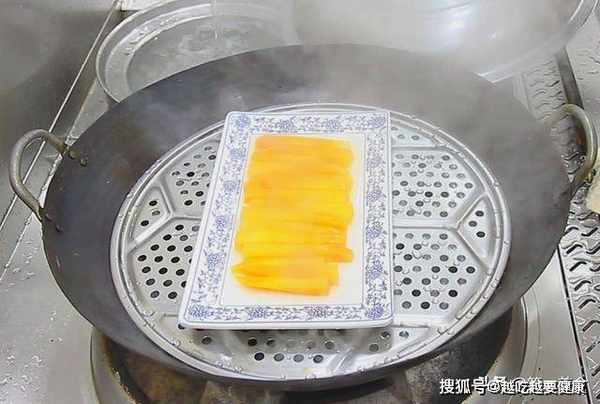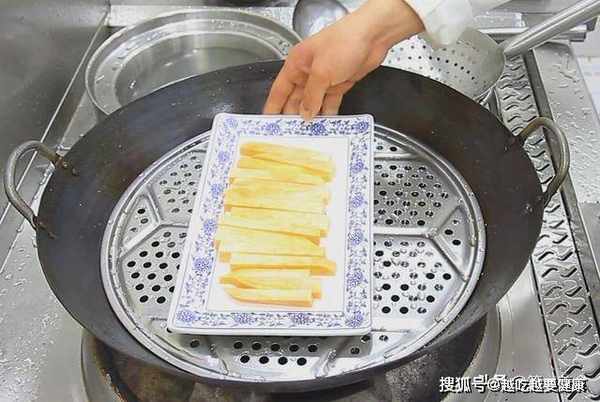 3分钟后,取出蒸好的红薯,蒸太熟,炸的时候红薯容易烂。