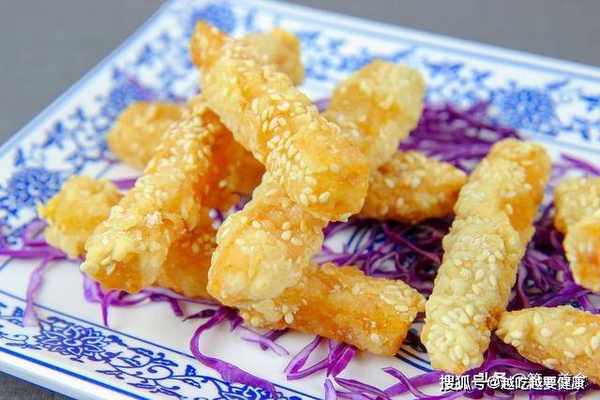 然后把紫甘蓝垫在盘底,红薯条摆放在盘子里,上桌更好看。好了,这道简单好吃的红薯脆条就做好了,香脆酥甜,吃一口就能爱上这个味道,做零食最美不过。