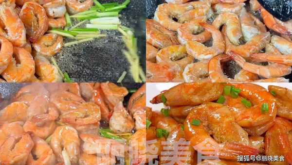 6、锅中烧油 放入大虾给炒一炒 小火慢炒,炒到大虾微微焦黄的时候 接着再放入一些葱姜丝 然后再继续给炒一炒,炒入味,然后再放入弄好的料汁,接着再给继续小火焖 焖3-5分钟,焖好 撒入葱花 接着再给盛出 美味好吃的油焖大虾就做好了。