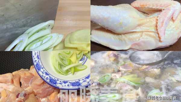 2、接下来再准备一些大葱 切成葱片,接着再准备一些生姜 切成姜片,接着再给切成姜丝,把洗净的鸡肉块给放进锅中 再放入葱姜 接着再放入料酒 大火烧开 给焯水,大火烧开后,把表面的浮沫给撇出来