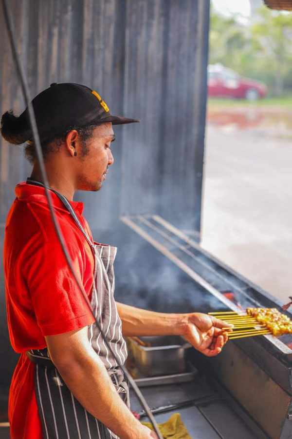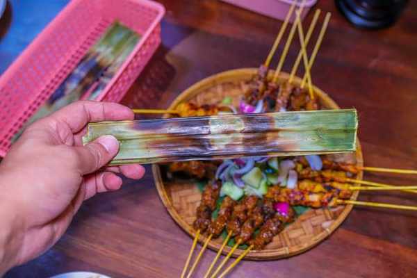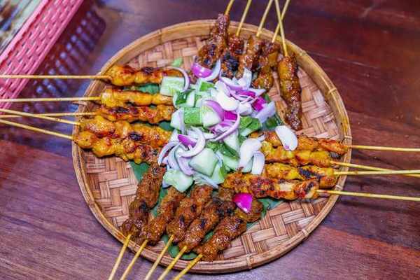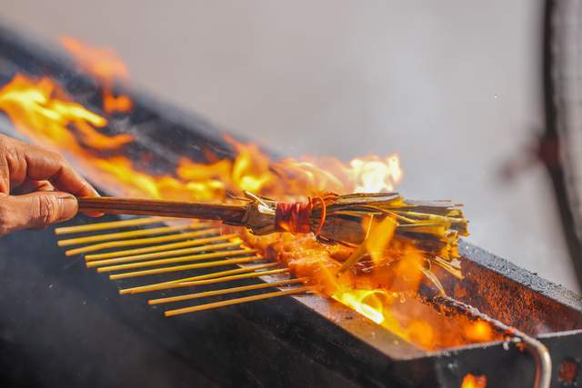 传统沙爹是由牛肉和羊肉制成的,用竹签串起来烤制,然后配以美味的花生酱和辣椒酱。