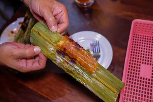 图为乌达,马来语为otak, 是一种鱼肉和香料混合的小吃,也是马来西亚最具代表性的美食。