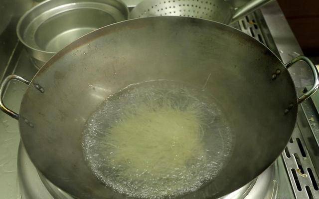 2、烧开水,把细粉放进去煮一会,特别怕变成硬粒。待粉丝微微透亮后,迅速倒出,趁热淋上老抽,迅速拌匀。提前上色可以很好的避免,炒的时候颜色不均匀,调好颜色浇油防止粘连。