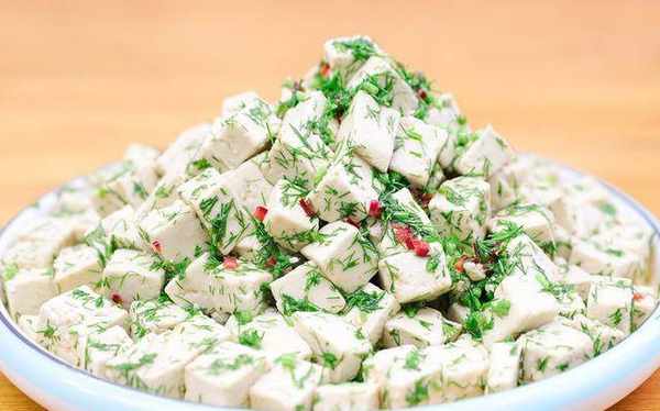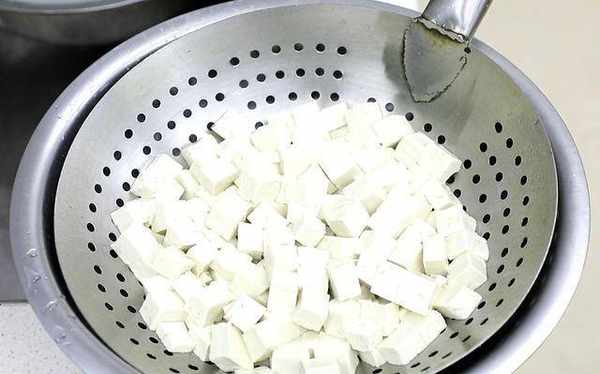 推荐做法:【豆腐拌茴香】1.准备一块豆腐,将豆腐切成1厘米左右的方块。烧开半锅开水,加入一勺碱面,将豆腐倒入锅中煮一会,去除豆腥味。在这里,用微碱性的水煮,可以让豆腐更滑更软。煮沸后,继续煮1分钟,将豆腐煮透。
