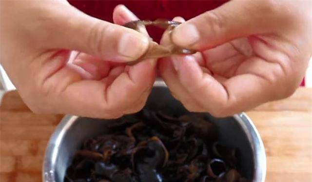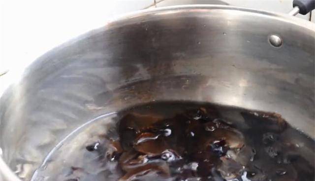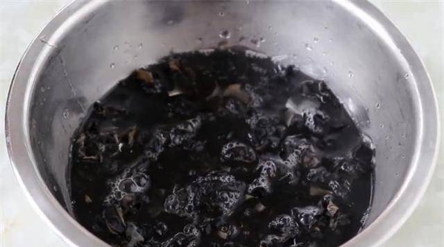 1.将一些干霉倒入锅中,加入热水浸泡一会。