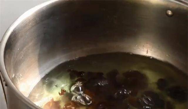 3.这是预先浸泡过的海绵。倒入水中煮沸。煮约1分钟,然后取出以控制水分。