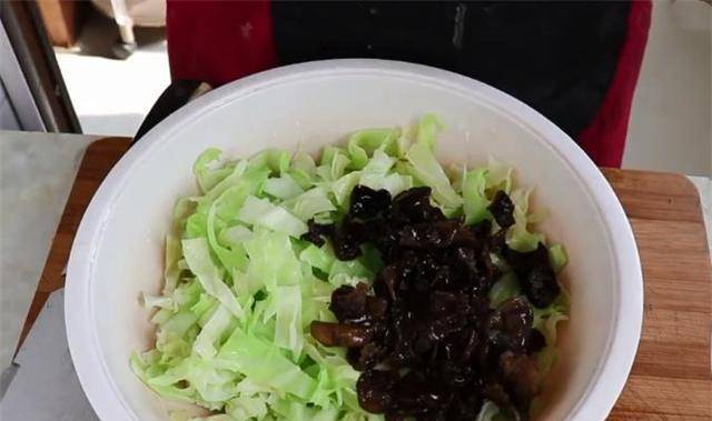 4.将焯好的白菜和香菇放入盆中。