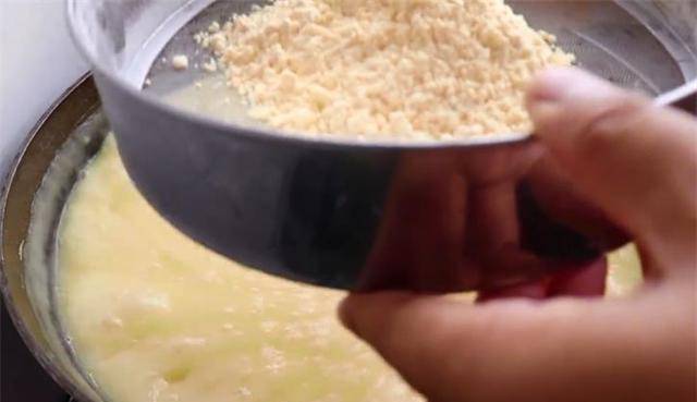 4、用筛子这样过滤玉米面,不容易有结块在里面。