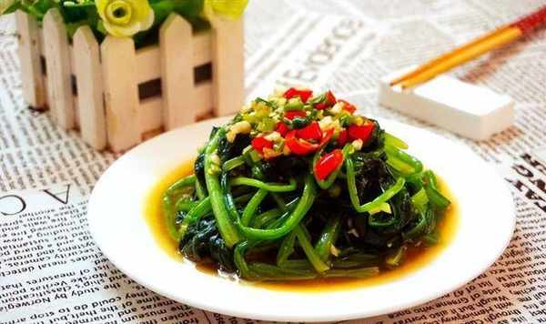 推荐食谱:【菠菜沙拉】1、菠菜去根洗净。锅里加水,水开后加少许盐,下入菠菜焯水沥干水分。