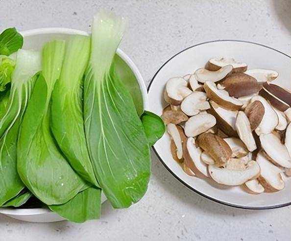 1、先将上海青和香菇清洗干净,然后将上海青去根,香菇切成片,放入碗中待用。