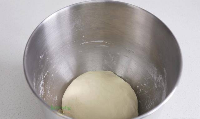 第三步:将面团来回揉至光滑,然后加入猪肉再次揉面团。盖上湿布,静置30分钟。