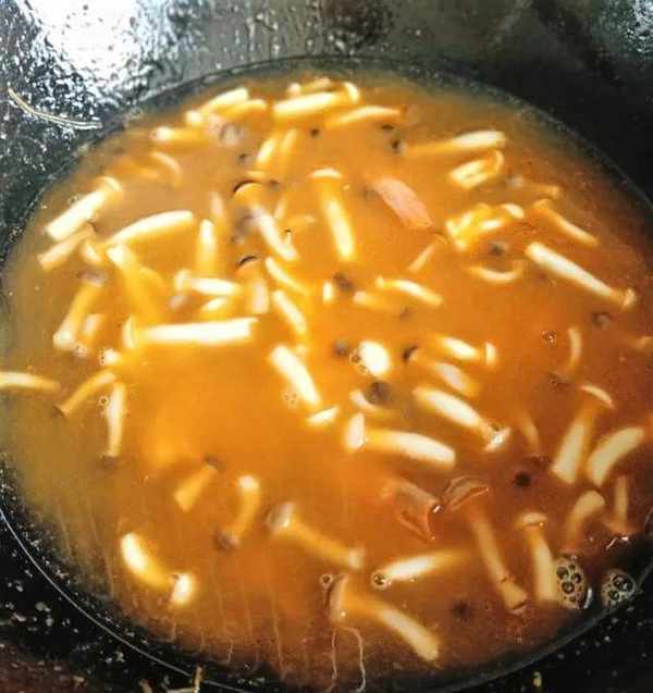 (水烧开后,放入锅中煮至差不多熟了再回锅)。