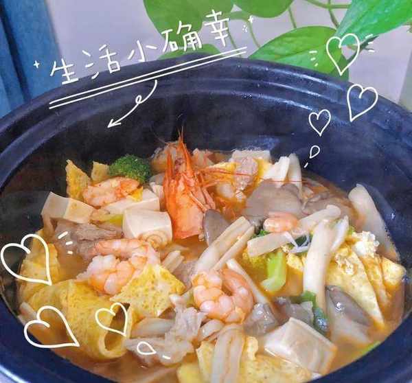 “改良版豆腐虾仁炖午餐肉鸡蛋饺子好吃!”