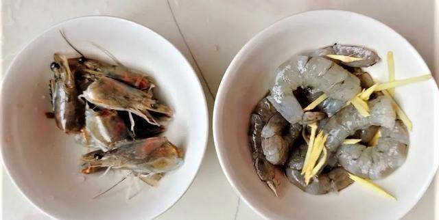 将虾用盐、料酒和姜末腌制10分钟。