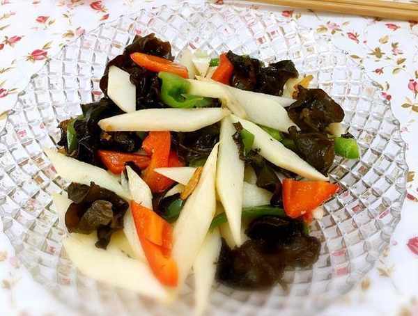 1.山药去皮洗净,切成菱形块。将蘑菇预先浸泡在水中并撕成小块。青红椒去蒂去籽,洗净切块,姜蒜剁碎。锅中烧开水,加入山药片和香菇煮1分钟;然后加入青椒和红椒煮1分钟,捞出沥干。2.锅中油烧热,加入姜片和蒜片爆香,加入青红椒边炒香,加入焯好的香菇和山药片,边炒边高温2分钟,加入适量白醋、生抽和盐调味。在搅拌的同时,用高温煎炸,然后从锅中取出。