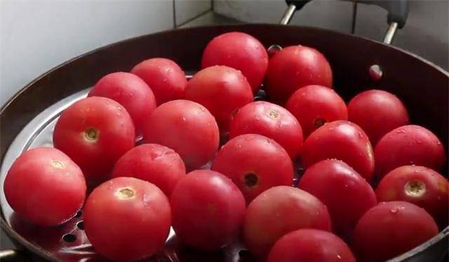 1、西红柿洗净,放入锅中。我有大约4只猫。将西红柿从锅中取出约8分钟。