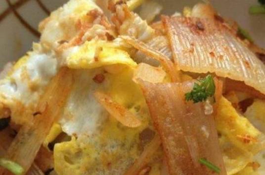 6.撒上葱花,然后用铲子切成段,盛盘放蒜蓉辣酱即可。