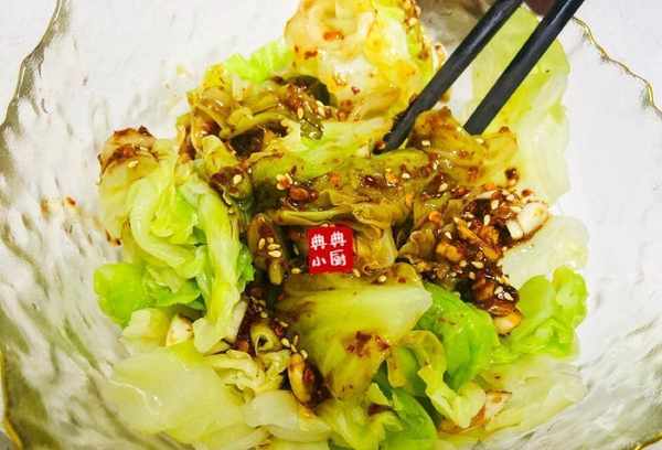 最后,我还烧了热油浇在上面。这种做法其实和冷沙拉差不多。第一步白菜不用炒就可以了,也可以直接在开水里焯一下。