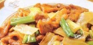 2.炒锅内倒油烧热,下鸡片滑散,加入葱末、姜末、冬笋片翻炒至熟,用芡汁勾芡,淋上香油即可。