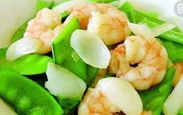 材料:虾仁200克、鲜百合50克、荷兰豆30克。