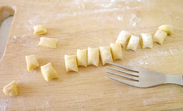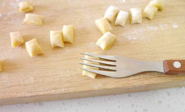 15.再切成小段,现在就出现了很多小面团,我们准备一把叉子。