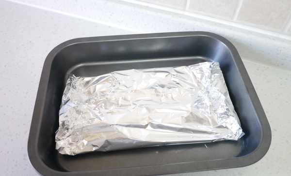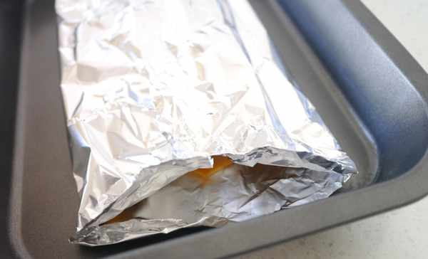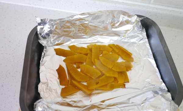 3.用锡纸将南瓜片包起来。