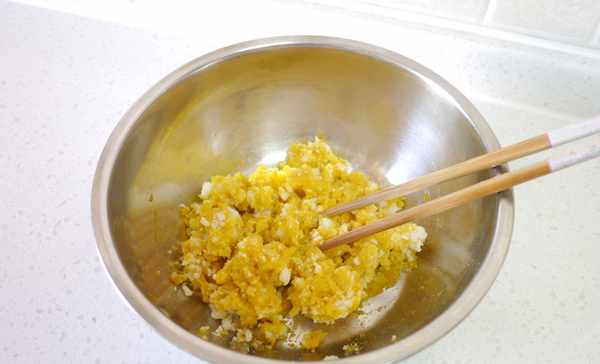 12.用筷子继续搅拌,如果觉得太干可以加入剩下的蛋液。