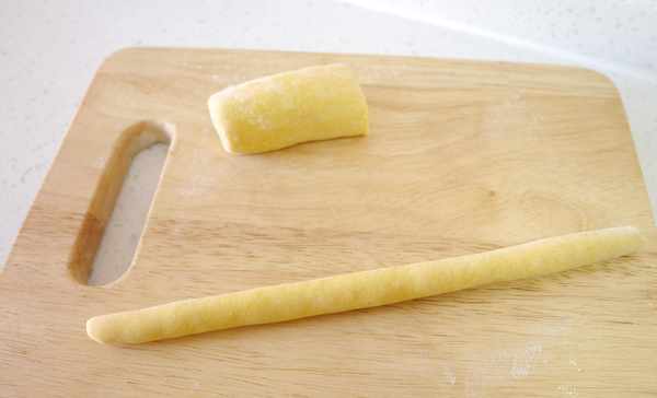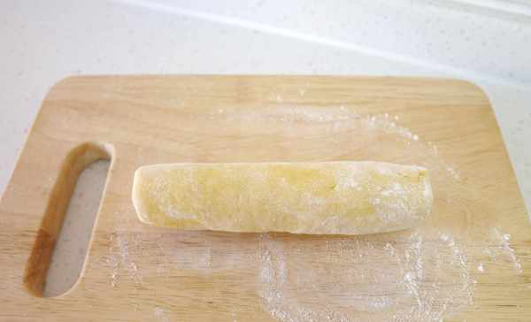 14.再将面团整理成细细的长条状,可以将面团分成若干小份,再一份一份地搓成长条状。