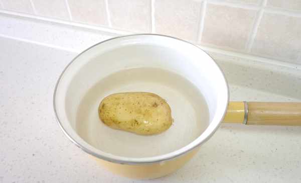 1.准备1个中等大小的土豆,约200克左右,带皮放入小锅中煮熟,不要削皮,也不要切块,避免吸收太多的水分。