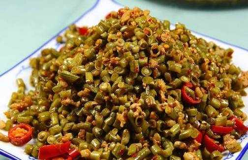 1.将洗净的酸豆角切成丁;洗净的猪肉剁成肉末。