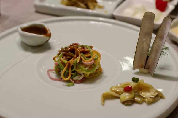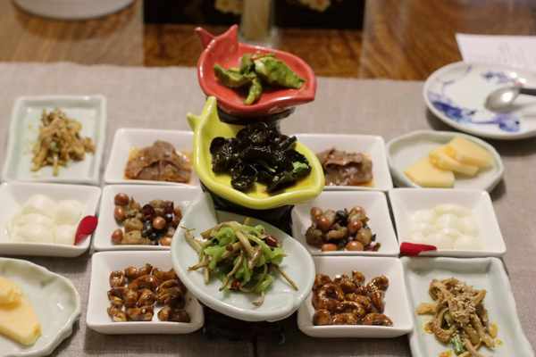 开胃菜拼盘:火锅鸡 豉香兔丁 米椒木耳 自然之味