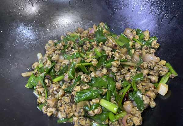 食材:韭菜、螺肉、辣椒、蒜末、盐、酱油、醋、白糖、食用油。