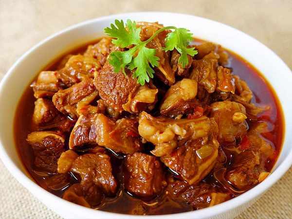 2、锅中加水,放酱油、盐、八角、波蔻、陈皮、干花椒、干辣椒、料酒、茴香、孜然粉,用高压锅压制25分钟左右即可。