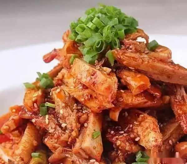 6、将锅内的热油淋在拌好的腐竹上面即可。