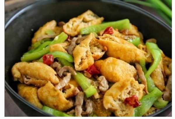 材料:豆腐泡、猪肉、红辣椒、青椒、酱油、生抽、淀粉、盐、蚝油、盐、葱姜蒜、料酒、