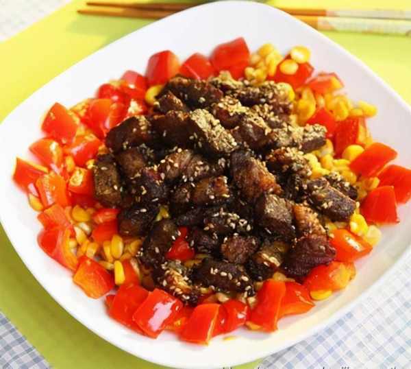 做法:1、马蹄去皮,切成颗粒,焯水待用。