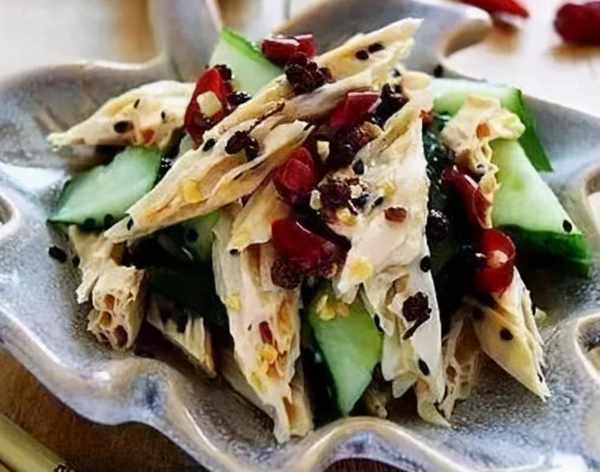 材料:腐竹 、黄瓜、干辣椒、熟黑芝麻