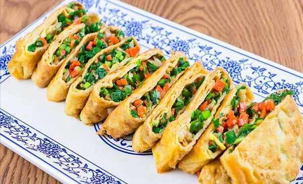 一道营养丰富的韭菜蛋卷就做好了。